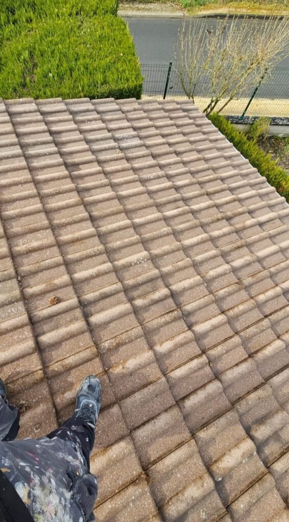 Nettoyage de toiture Démoussage, nettoyage de tuiles ou ardoises, traitement hydrofuge préventif et curatif pour protéger votre toiture et allonger la durée de vie de vos tuiles.